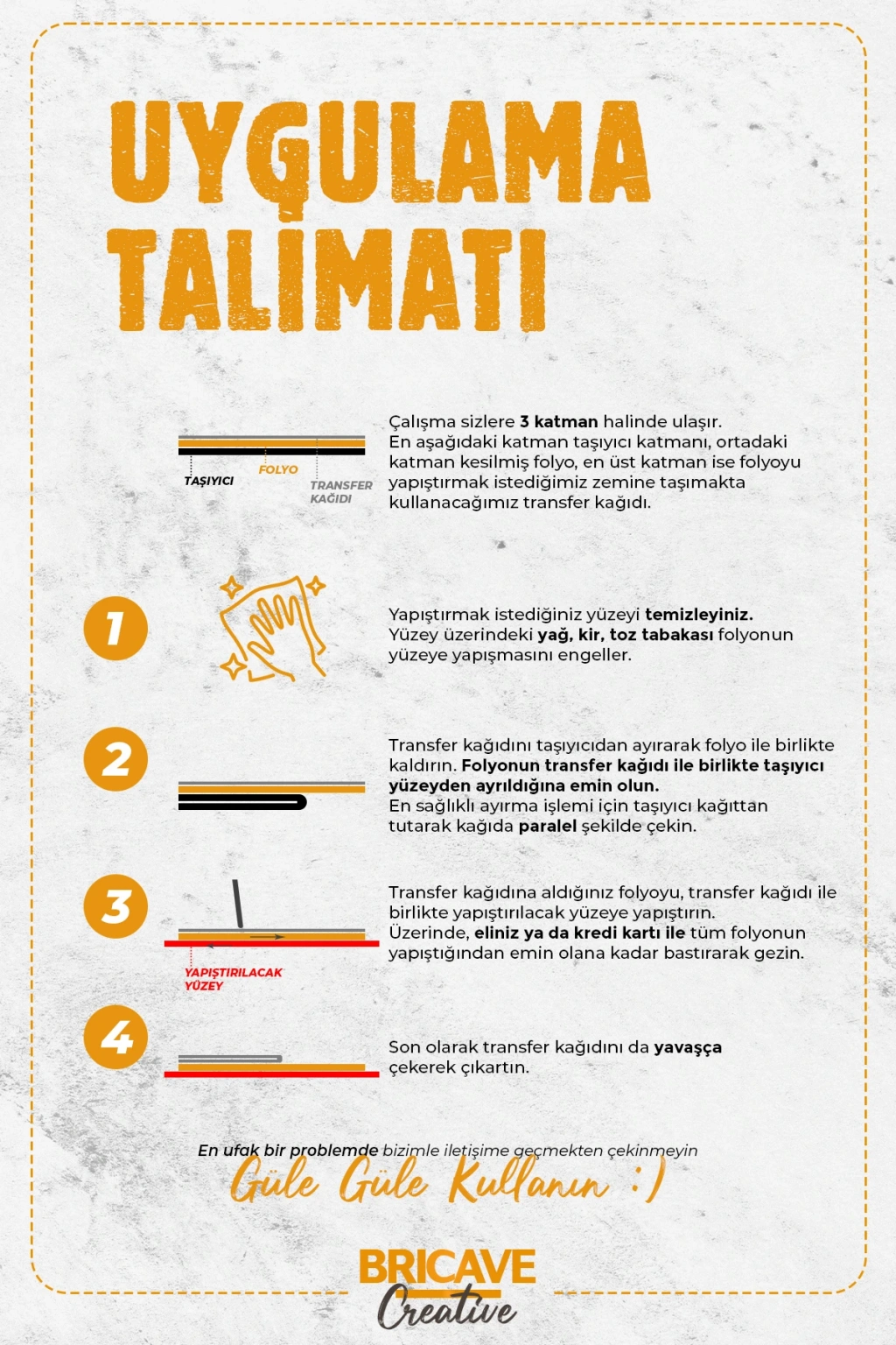 • Stickerler kendi üretimimizdir.; Yüksek kaliteli folyolar kullanılarak üretilmektedir.; Araba, motosiklet, laptop vb.; kişiselleştirmek istediğiniz her yerde kullanabilirsiniz.; • Baskı değil renkli kesim folyodur, renk bozulması yapmaz.; • Uygulanan yüzeye zarar vermez, kolayca sökülebilir.; • Üzerinde transfer folyosu ile gelmektedir, bu sayede istediğiniz zemine kolayca uygulayabilirsiniz.; • Uygulamadan önce zemini temiz bir bez ile temizleyiniz.; Zeminin yağlı, kirli olması uygulama kalitesini etkilemektedir.; ; Araba ve Motorsiklet Sticker Özellikleri Araba ve motosiklet stickerleri kişilerin tarzlarına göre birçok özellik barındırır.; Bu özellikler genel olarak kullanıcı deneyimini etkiler.; Malzemeni kalitesi ve dayanıklılığı satın alığınız üründen maksimum almanızı sağlar.; Dış etkenlere dayanıklı bir model seçiminde bulunmak son derece önemlidir.; Rüzgara, yağmura ve kötü hava koşullarına dayanıklı bir model seçerek bu dertten kurtulabilirsiniz.; Araba sticker yazı veya görsel içerebilir.; Renk seçenekleri ve tasarım çeşitliliği de dikkate değerdir.; Araba ve motosiklet sahipleri kendi zevklerine ve araçlarının tarzına uygun stickerları seçebilmek için geniş ürün yelpazesi içerisinde inceleme yapabilirler.; Bu avantajla birlikte araçlarının dış görünüşünü kişiselleştirebilir ve farklılık yaratabilirler.; Renkli veya renksiz olmak üzere pek çok tasarım bulunur.; Ek olarak araba sticker yapıştırma işleminin basit olması önemlidir.; Takma ve çıkarma sırasında araca zarar vermemesi için kaliteli modellere yönelmelisiniz.; Kullanıcılar stickerları sorunsuz bir şekilde araçlarının yüzeyine yapıştırmak ve istediklerinde kolayca çıkartmak için bu faktöre dikkat etmelidir.; Tüm bu özellikleri barındıran kaliteli motosiklet sticker modellerini ürün çeşitlerimiz arasından inceleyebilirsiniz.; Araba ve Motosiklet Sticker Yorumları Araba ve motosiklet stickerları hakkında yapılan yorumlar potansiyel alıcılar için değerli bir bilgi kaynağıdır.; Sticker markalarının kalitesini ve müşteri memnuniyetini değerlendirmek için önemli bir alandır.; Bu yorumlar alıcıların motosiklet ve araba aksesuar seçimlerini yaparken dikkate almaları gereken faktörleri anlamalarına yardımcı olur.; Kullanıcı yorumları genellikle müşteri memnuniyetini gözler önüne serer.; Müşteriler satın aldıkları stickerlarla ilgili deneyimlerini paylaşır.; Ürünün kalitesi, dayanıklılığı ve uygulanabilirliği hakkında bilgi sunarak diğer insanlara bilgi aktarırlar.; Bu da alıcıların daha doğru seçimler yapmasına yardımcı olan önemli bir araç olarak karşımıza çıkar.; Kullanıcıların deneyimlerine ve önerilerine dikkat ederek daha kaliteli sticker modelleri satın alabilirsiniz.; Müşterilerin paylaştığı fotoğrafları inceleyerek nasıl bir görüntü oluşturduğu hakkında fikir sahibi olabilirsiniz.; Birçok insan bu yorumlar eşliğinde alışveriş yapar ve alışveriş deneyimini daha iyi bir seviyeye çıkarır.
